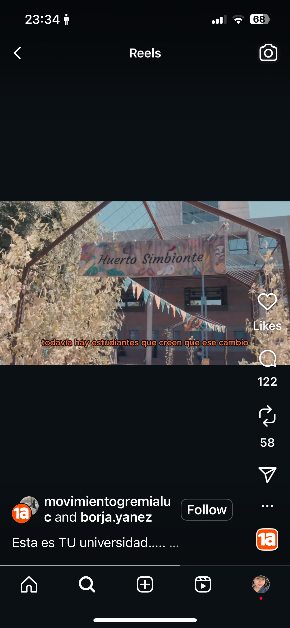 El día 26 de septiembre se publicó en Instagram un video elaborado por el  Movimiento Gremial. En dicho reel se incluyen imágenes de un espacio perteneciente a  nuestra organización, Huerto Simbionte, ubicado en la Facultad de Agronomía y  Sistemas Naturales, además de un primer plano de un cartel con nuestro nombre.